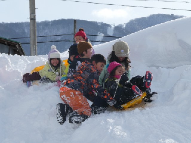 この日は園児に小学校に来てもらって雪遊びをしました。