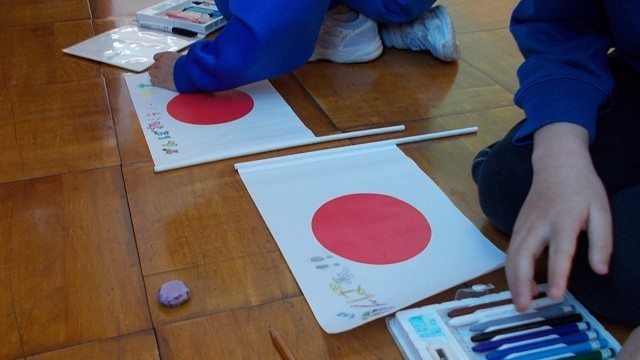 先日、スキージャンプ部の後輩である6年生が全校に「応援の小旗にメッセージを書いて」呼びかけたところ、早速各学級で取り組んでいました。