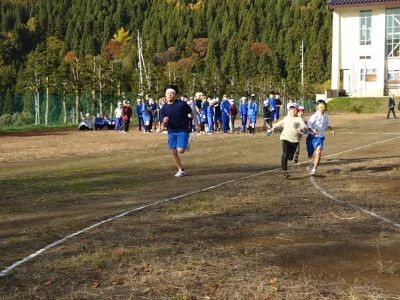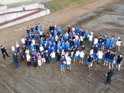 リレーでは、「小学生はコーナーではトラックの内側のラインを走る」など、ルールも工夫して一緒に楽しめるようにしました。最後には、晩秋の夕空の下、恒例のドローンによる記念撮影を行うなど、終始和気あいあいとした雰囲気でした。
